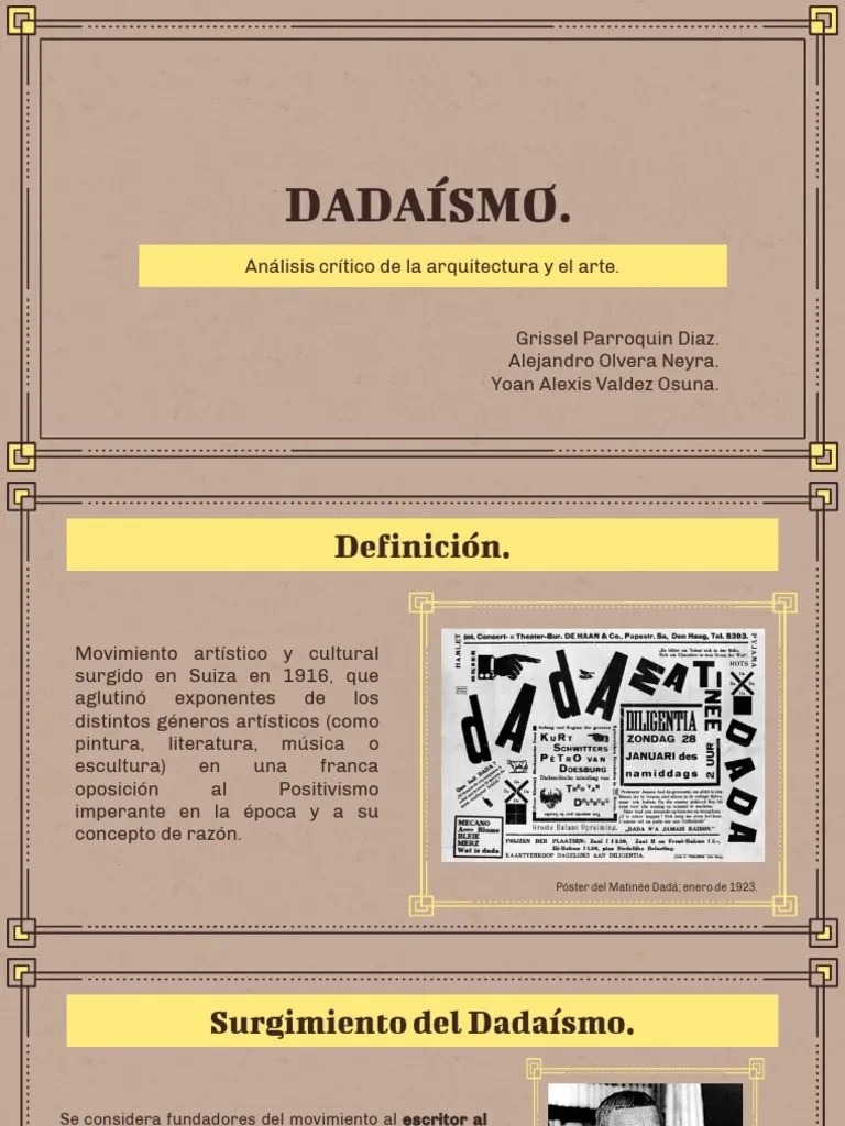 Es por ello que es considerado como un movimiento antiartístico, antipoético y antiliterario que empieza a indagar y cuestionar la existencia del arte y su objetivo, especialmente de. En los textos dadaístas las palabras se suceden sin que puedan organizarse en frases "lógicas". Es por ello que es considerado como un movimiento antiartístico, antipoético y antiliterario que empieza a indagar y cuestionar la existencia del arte y su objetivo, especialmente de... El dadaísmo era provocador, escandaloso, y defendía el caos y la imperfección contra sus.