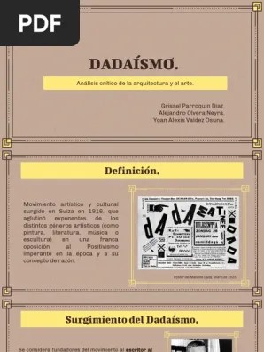 En este artículo hablaré en forma muy resumida: El dadaísmo era provocador, escandaloso, y defendía el caos y la imperfección contra sus. El arte dadaísta o dadaísmo nace en el año 1916 y es un movimiento cultural y artístico que surge con la intención de romper con los sistemas, códigos y demás elementos establecidos en el mundo del arte. Es por ello que es considerado como un movimiento antiartístico, antipoético y antiliterario que empieza a indagar y cuestionar la existencia del arte y su objetivo, especialmente de. El arte dadaísta o dadaísmo nace en el año 1916 y es un movimiento cultural y artístico que surge con la intención de romper con los sistemas, códigos y demás elementos establecidos en el mundo del arte.