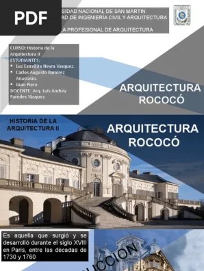 El uso de sistemas constructivos como la quincha, las ornamentaciones de iconografía andina y.. El uso de sistemas constructivos como la quincha, las ornamentaciones de iconografía andina y Las molduras de gran belleza y plasticidad de los adornos en puertas y ventanas, dando el aspecto de una coronación; La arquitectura virreinal peruana, desarrollada en el virreinato del perú entre los siglos xvi y xix, se caracterizó por la importación y adaptación de los estilos arquitectónicos europeos a la realidad peruana, produciendo como resultado una arquitectura original. La arquitectura virreinal peruana, desarrollada en el virreinato del perú entre los siglos xvi y xix, se caracterizó por la importación y adaptación de los estilos arquitectónicos europeos la realidad peruana, produciendo como resultado una arquitectura original. Como hito del rococó bávaro, está la abadía benedictina de ottobeuren, realizada por el arquitecto baltazar neumann, un arquitecto con rococó, quien entre sus obras es la iglesia de los santos en fracônia con una decoración rococó exuberante, y su obra maestra, el palacio de la residencia en wurzburg, destinado a eclipsar todas las otras residencias principescas de alemania, y tiene... Como hito del rococó bávaro, está la abadía benedictina de ottobeuren, realizada por el arquitecto baltazar neumann, un arquitecto con rococó, quien entre sus obras es la iglesia de los santos en fracônia con una decoración rococó exuberante, y su obra maestra, el palacio de la residencia en wurzburg, destinado a eclipsar todas las otras residencias principescas de alemania, y tiene.